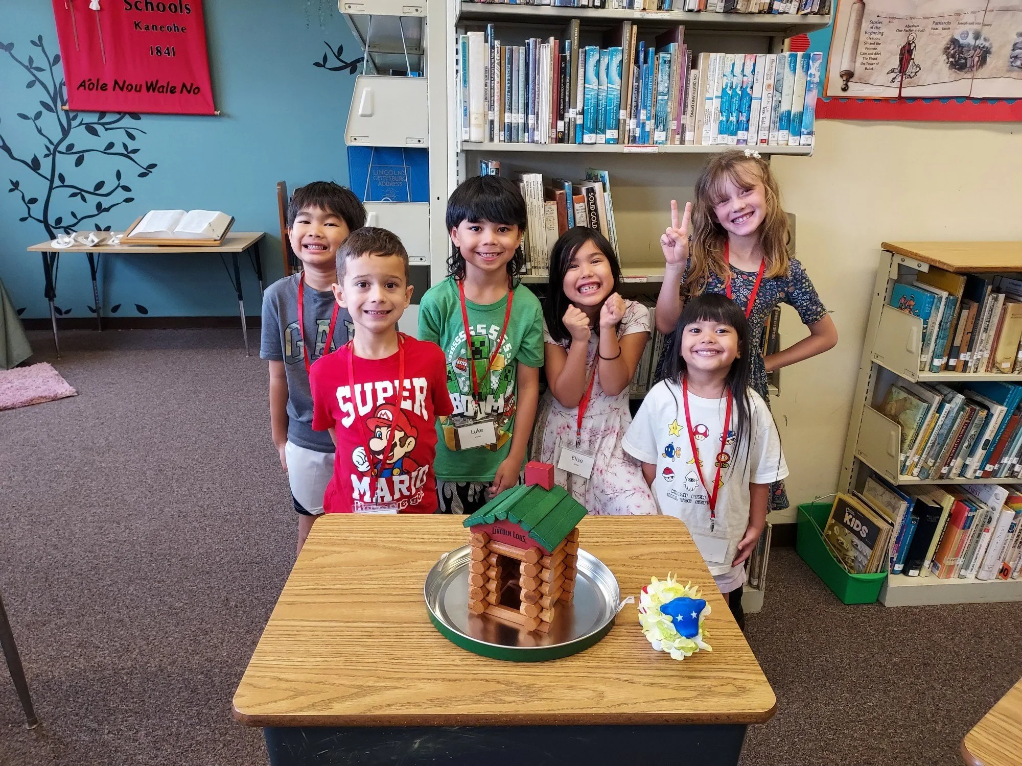 The K-2 students built log cabins while studying President Abraham Lincoln
